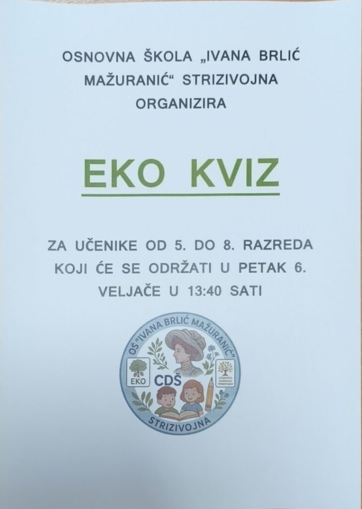 Naša škola organizira prvi eko kviz koji će se održati u petak 6. veljače.