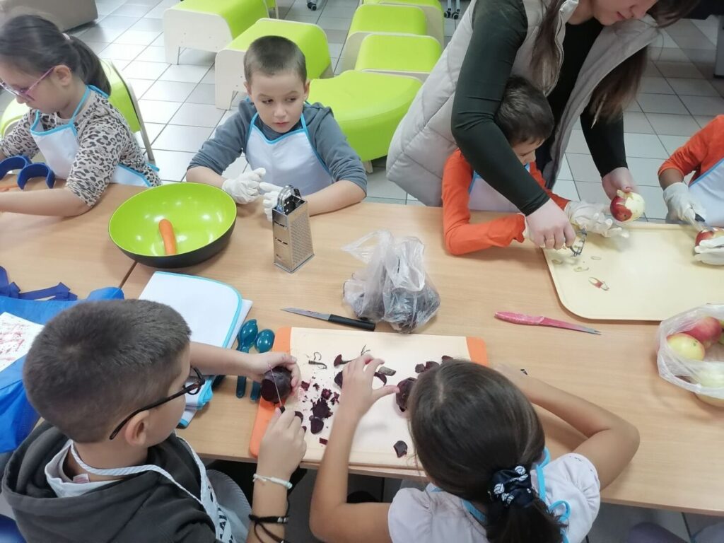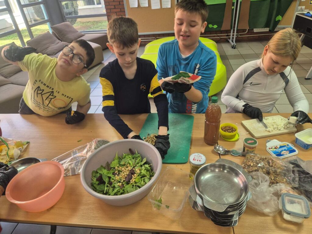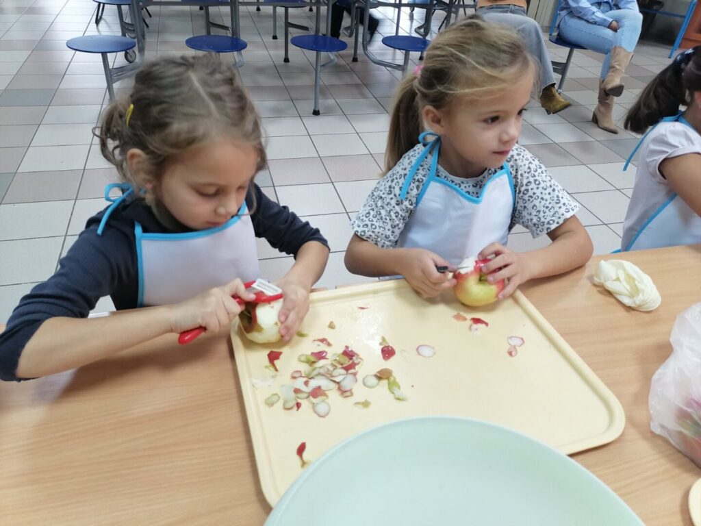 Kako je 16. listopada bio Svjetski dan hrane odlučili smo i kroz ovaj projekt obilježiti taj dan. Jedna od prvih aktivnosti bila je priprema salata od zdravih namirnica. Svaki dan jedan je razred pripremao salatu koju su učenici blagovali uz školski ručak. Naravno, središte svake salate bila je jabuka kao kraljica voća. Učenici su se ohrabrili isprobati različite okuse i kombinacije jela na koje do sada nisu navikli, a povratna informacija bila je više nego pozitivna.