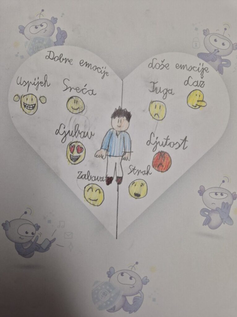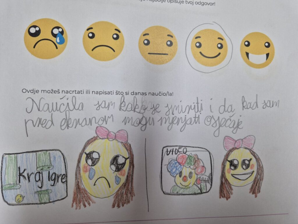 Ova radionica bila je usmjerena na emocionalnu dobrobit djece u digitalnom okruženju. Učenici su: