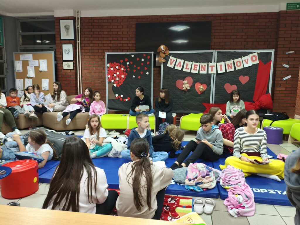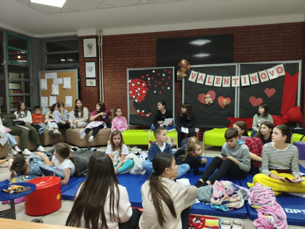 U srijedu, 11. veljače, održana je večer čitanja tijekom koje su se učenici družili uz poeziju i prozu s ljubavnom tematikom. Čitanjem naglas poticali su izražajno i tečno čitanje, razvijali maštu te učili kako doživjeti i prenijeti emociju teksta publici. Svrha aktivnosti je stvaranju pozitivnog odnosa prema knjizi i jačanju čitateljskih navika.